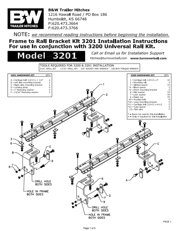 - Supplemental kit to provide attachment points for 5th Wheel hitch rails