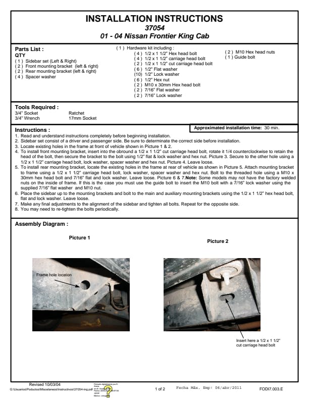 Side bars, mounting brackets, Side bars, mounting brackets |