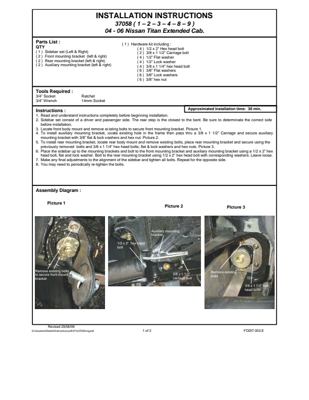 Side bars, mounting brackets, Side bars, mounting brackets |