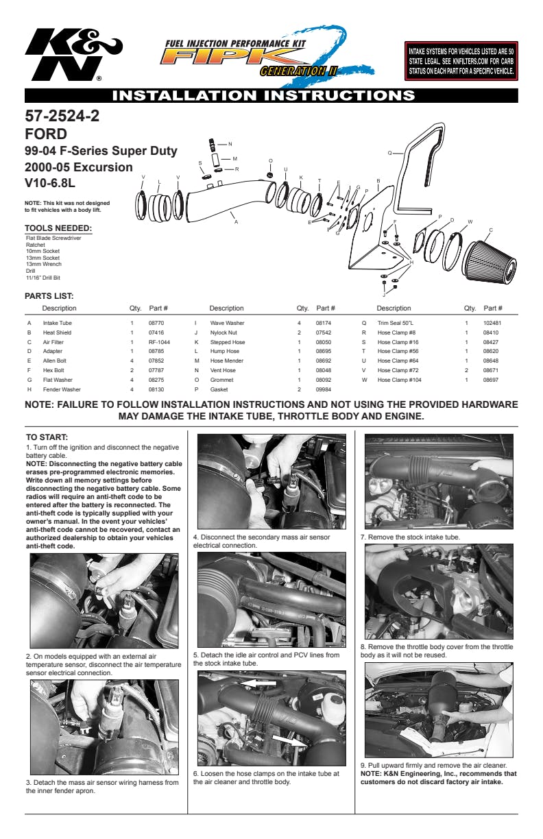 K&N's roto-molded cold air intake systems are guaranteed to provide an increase in horsepower and torque, and are protected by the K&N No-Hassle Lifetime Limited Warranty.