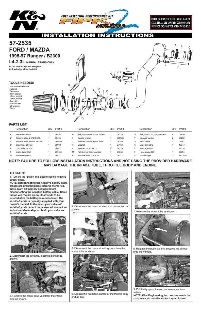 K&N's roto-molded cold air intake systems are guaranteed to provide an increase in horsepower and torque, and are protected by the K&N No-Hassle Lifetime Limited Warranty.