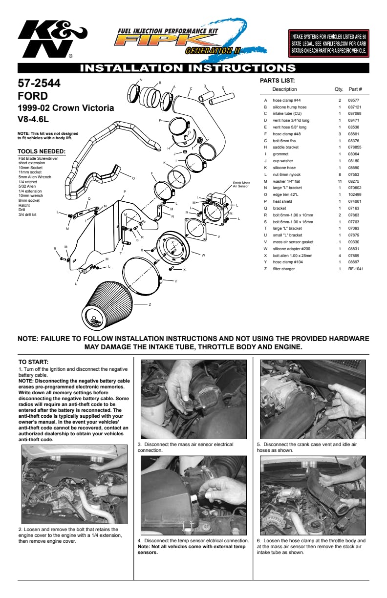 K&N's roto-molded cold air intake systems are guaranteed to provide an increase in horsepower and torque, and are protected by the K&N No-Hassle Lifetime Limited Warranty.