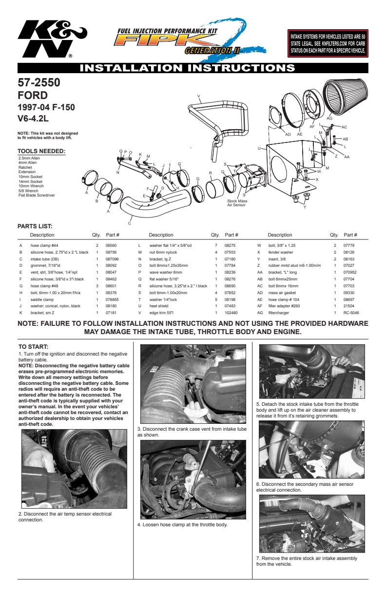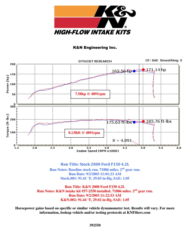 K&N's roto-molded cold air intake systems are guaranteed to provide an increase in horsepower and torque, and are protected by the K&N No-Hassle Lifetime Limited Warranty.