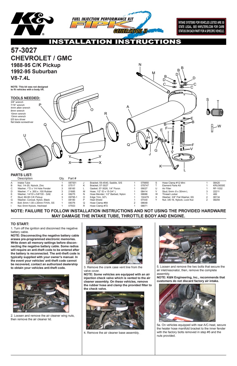 K&N's roto-molded cold air intake systems are guaranteed to provide an increase in horsepower and torque, and are protected by the K&N No-Hassle Lifetime Limited Warranty.