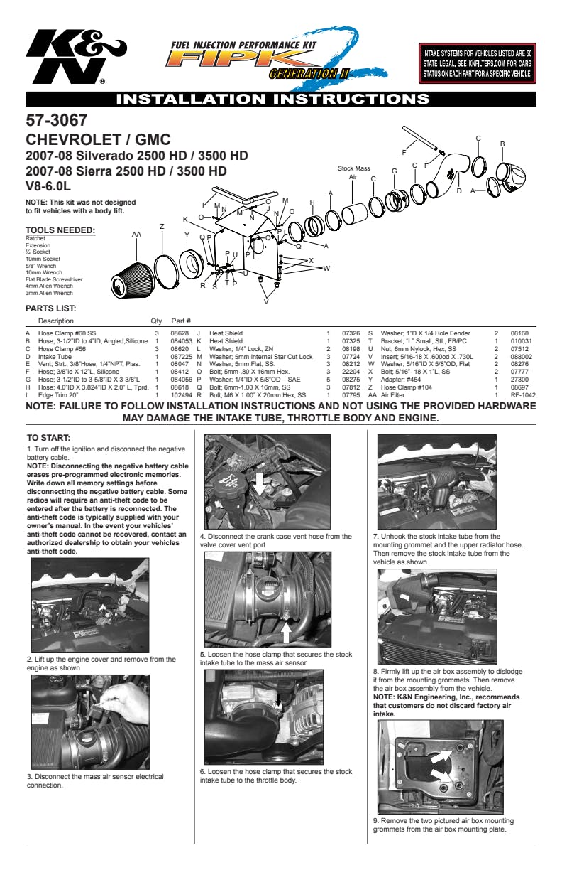K&N's roto-molded cold air intake systems are guaranteed to provide an increase in horsepower and torque, and are protected by the K&N No-Hassle Lifetime Limited Warranty.