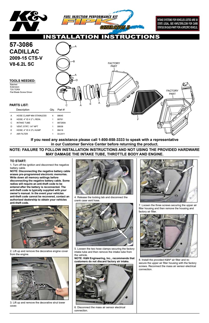 57-series OEM air box intake systems include a washable, reusable High-Flow Air Filter paired with a CAD-designed high airflow intake tube, and is designed to be a simple, cost-effective performance upgrade. The included oiled cotton filter is a direct replacement for your factory filter, drops easily into the factory air box, can go up to 100,000 miles between filter services under normal highway driving conditions, and offers K&N's industry-leading engine protection. Each 57-series OEM air box intake system is designed for specific vehicle applications to ensure a precise fit, and can typically be installed in less than 60 minutes with only standard hand tools. Buy with confidence under the K&N No-Hassle Lifetime Limited Warranty. Legal in all 50 States.