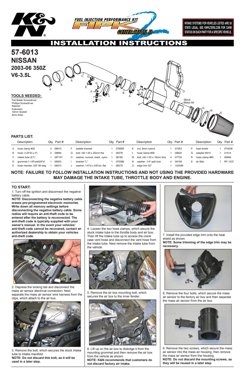 K&N's roto-molded cold air intake systems are guaranteed to provide an increase in horsepower and torque, and are protected by the K&N No-Hassle Lifetime Limited Warranty.