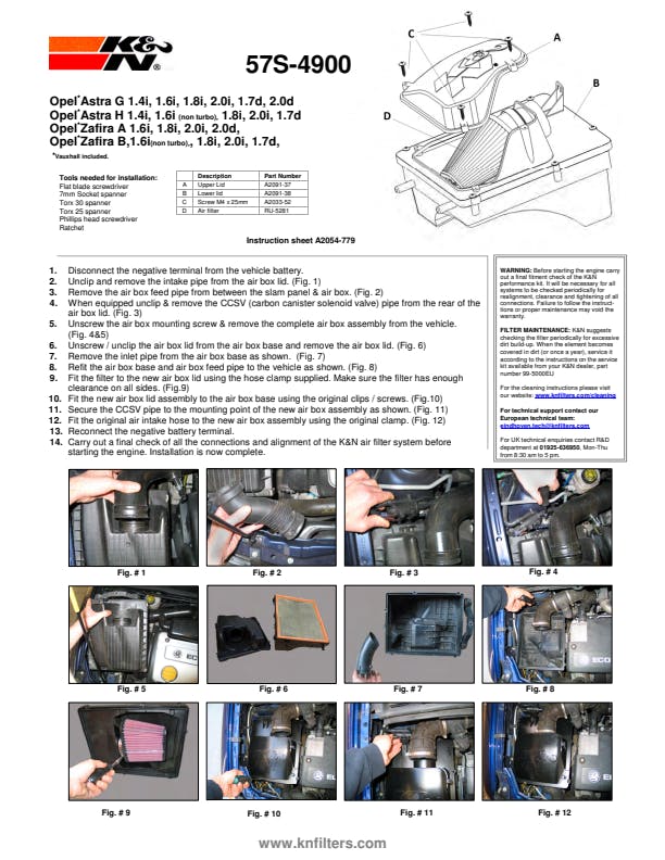 The K&N 57S-4900 Performance Airbox replaces the restrictive factory air filter and air box. K&N performance air boxes are designed to dramatically reduce air flow restriction as well as smooth and straighten air flow. This allows your engine to inhale a larger amount of air than the factory air filter assembly. More air means more usable power and acceleration throughout the engine's RPM range. The 57S-4900 Performance Airbox comes with a custom shaped K&N high-flow air filter and a fully enclosed injection molded air box that connects up to the factory air intake hose. The air box has a removable lid for easy access to the filter when cleaning is required. The air filter can be used for up to 100,000 miles before servicing is needed depending on driving conditions. This performance air box is relatively easy to install into the previous air box space with commonly available tools. K&N builds these air box systems to last for the life of your vehicle and they are backed by K&N's Million Mile Limited Warranty. Some K&N 57S Series Performance Airboxes are compliant with the latest TUV emissions and sound regulations. Check the K&N catalog or website for vehicle applications and specific TUV status for each vehicle and air intake.