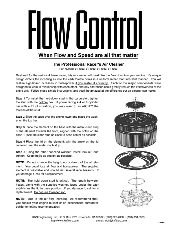 The K&N Flow Control System utilizes a custom designed base in combination with a unique lid designed to reduce intake turbulence.