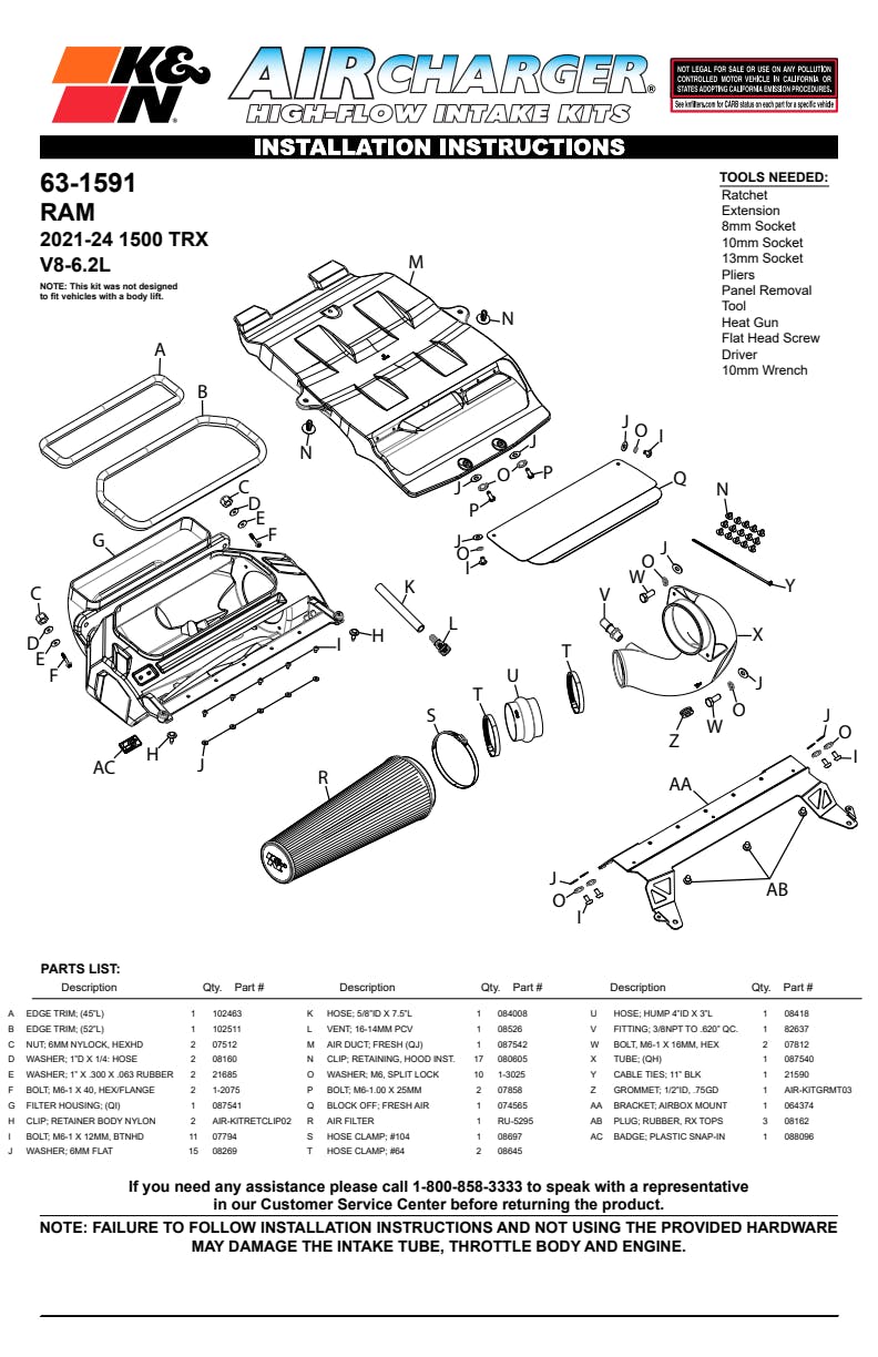 This system includes BOTH a redesigned larger hood scoop inlet for the ram air scoop and K&N’s intake. This unique hood scoop design improves from the restrictive factory unit increasing air volume to the K&N intake.
