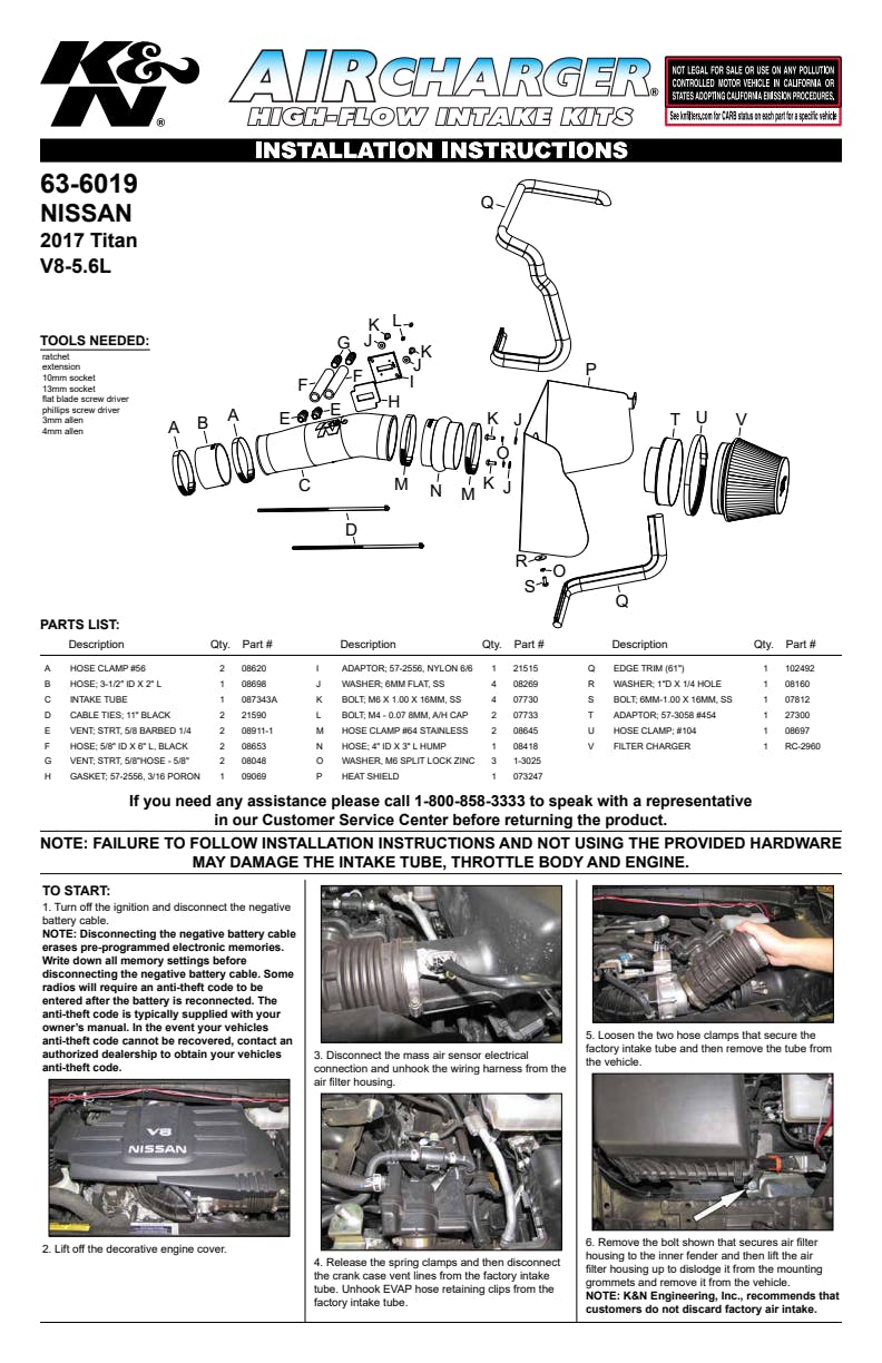 K&N's roto-molded cold air intake systems are guaranteed to provide an increase in horsepower and torque, and are protected by the K&N No-Hassle Lifetime Limited Warranty.